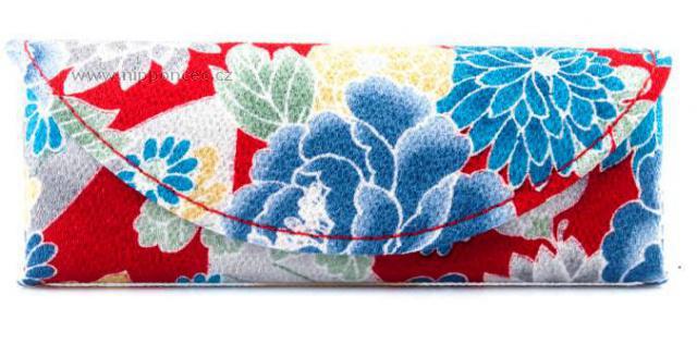 Dámské pouzdro na brýle je široké 16 cm. Pouzdro je potažené kimono látkou pestrého vzoru, s magnetickým uzávěrem. Vnitřní část je černá - sametově měkká, a vytvarovaná tak, aby bylo zabráněno nechtěnému posunutí brýlí v pouzdře. Praktický a elegantní doplněk, který svou krásou a příjemným dotykem potěší každou ženu.