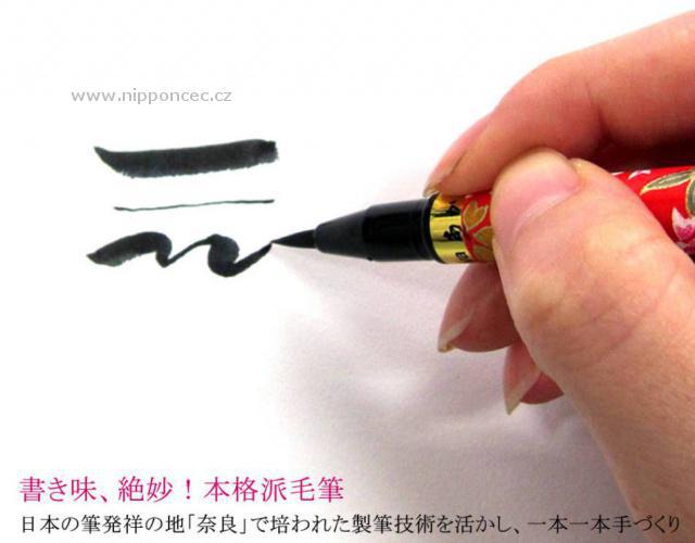 Japonské kaligrafické pero je plněné černým inkoustem na bázi vody. Pero je pokryto japonským washi papírem, se známým a přes 300 let oblíbeným kjótským vzorem Kyo-yuzen. Elegantní pero, kterým se píše mimořádně příjemně, je okamžitě použitelné.