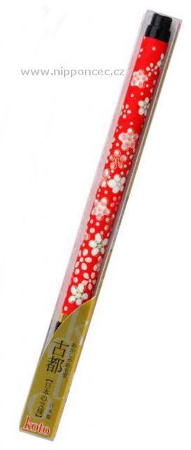 Japonské kaligrafické pero je plněné černým inkoustem na bázi vody. Pero je pokryto japonským washi papírem, se známým a přes 300 let oblíbeným kjótským vzorem Kyo-yuzen. Elegantní pero, kterým se píše mimořádně příjemně, je okamžitě použitelné.