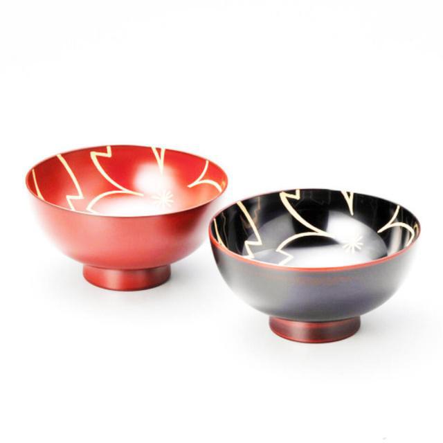 Souprava dvou japonských misek zlatě zdobených je ideální jako svatební dar, dárek k narozeninám nebo dar k výročí svatby. Misky v černé a červené barvě jsou lakované tradičním lakem Uruši, který je známý svými antibakteriálními účinky a miskám dodává jedinečný vzhled.