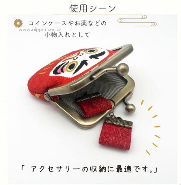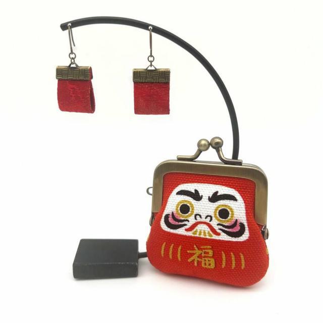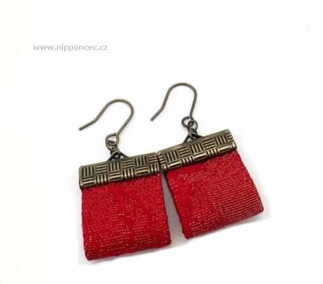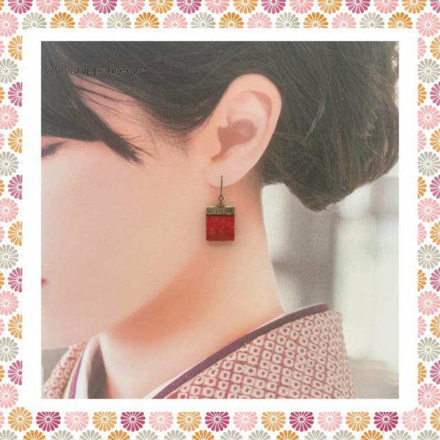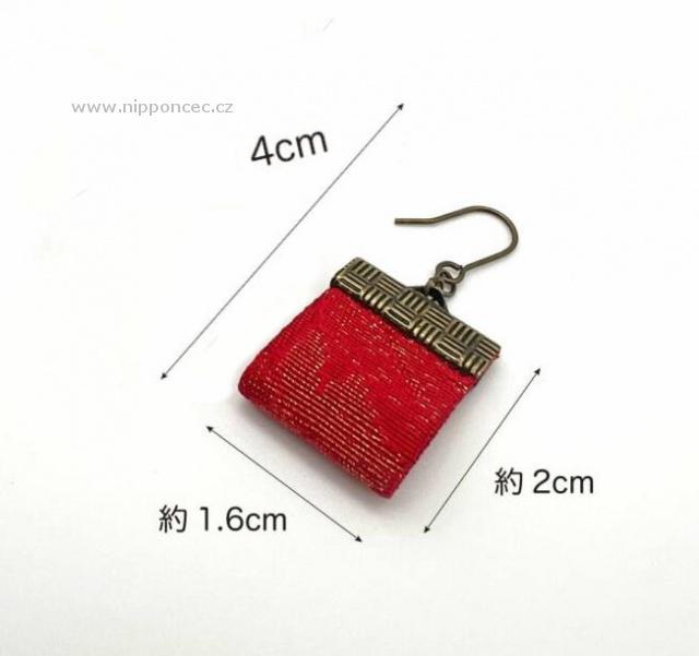 Originální lehké japonské náušnice AKA, které vynikají i v kombinaci s moderním evropským oblečením. Odstín náušnic je inspirován japonskou přírodou a tradicemi. Náušnice jsou vyrobeny ze speciálního hladce tkaného hedvábí Tango chirimen a mosazi. Jako dárek je součástí náušnic praktická taštička, která může sloužit i jako malá peněženka. Taštička je ozdobena Darumou, který je v Japonsku talismanem štěstí a vytrvalosti a pomáhá svému majiteli dosáhnout cíle.