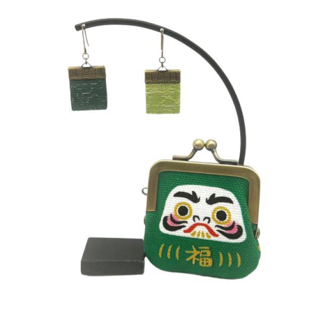 Japonské náušnice Midori s pouzdrem Daruma, zelené