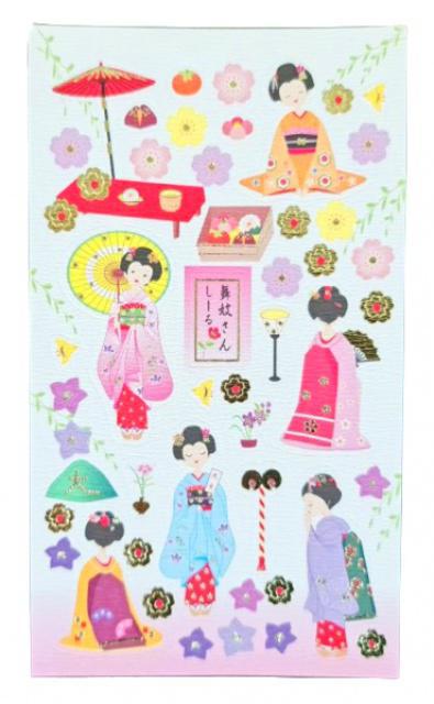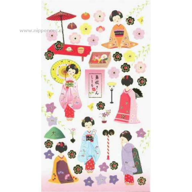 Aršík japonských samolepek s motivem Maiko. Maiko je označení pro mladou dívku, která je v učení na gejšu.