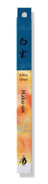 Vonné tyčinky Haku-Un - Bílý oblak Vysoce kvalitní sladko-zemitá vůně připomínající bílé mraky na blankytném nebi, vyrobená z receptury staré desetiletí. Jemně uklidní mysl. Vhodné na formální i neformální setkání.