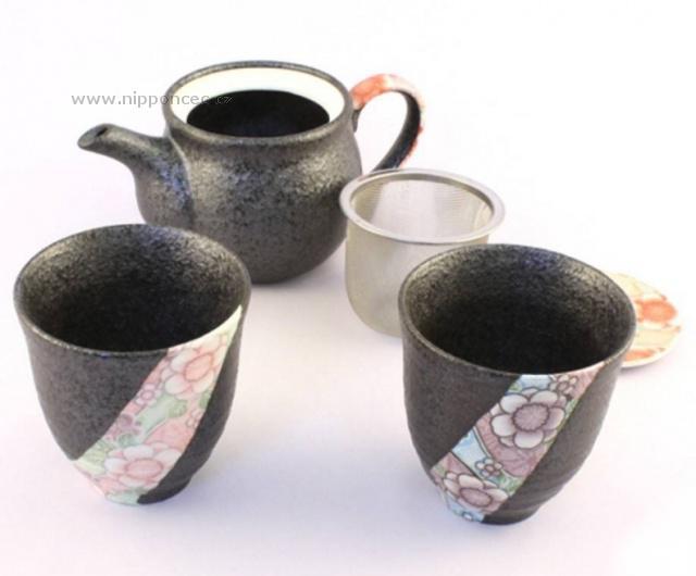 Souprava na čaj Yuzen se skládá z konvičky a dvou šálků. Je ideální pro přípravu zeleného čaje. Originální sada je vyrobena glazované keramiky a dekorována květinovými vzory v pastelových barvách - růžové, světle zelené, a modré barvě.