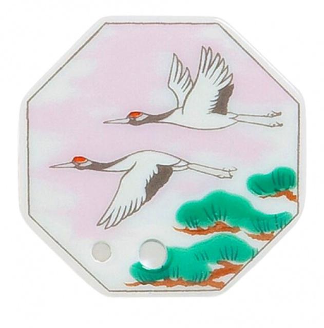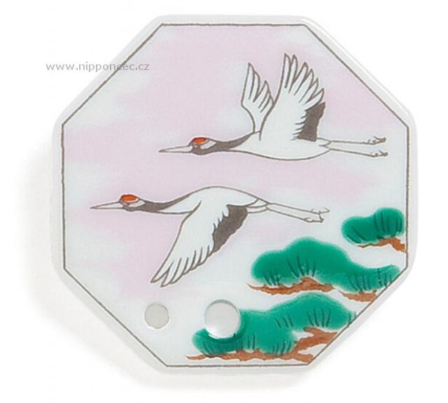 Vysoce kvalitní porcelánový držák vonných tyčinek s vyobrazením přilétajících jeřábů je vhodný pro širší i užší typ vonných tyčinek od společnosti Shoyeido.