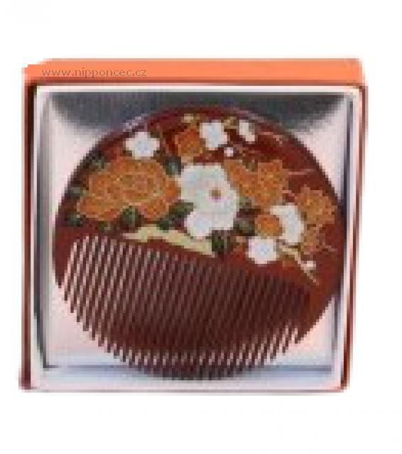 Japonský hřeben do kabelky zdobený květy. Praktický a elegantní doplněk, který svou krásou a jemností potěší každou ženu.
