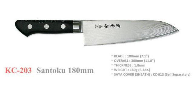 Santoku - je víceméně univerzální nůž, který lze použít pro krájení mnoha druhů potravin : masa, ryb, zeleniny a dalších. Čepel nože Santoku je obvykle rovná, zhruba od dvou třetin délky se stáčí nahoru. Díky tomuto provedení lze nožem snadno sekat i krájet nadrobno nejen zeleninu. Jde o jeden z nejpopulárnějších typů japonských nožů, vzhedem k širokým možnostem použití.