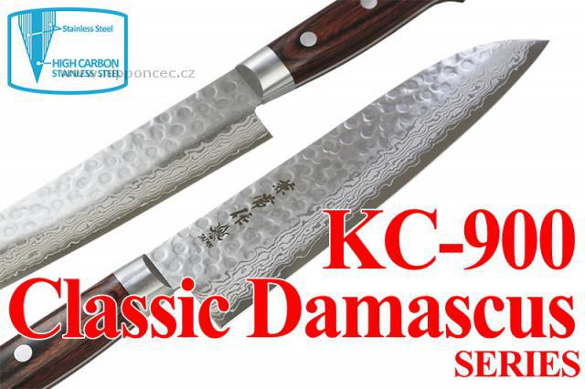 "Tsuchime" Kanetsune nože - to jsou damaškové nože s ultraostrým řezným jádrem z japonské oceli VG-10, excelentně odolné proti korozi. Tento druh japonské oceli se vyznačuje dlouhotrvající ostrostí tvrdosti HRC 59-60. Ocelové jádro je vloženo mezi 17 vrstev nerezové damascénské oceli z obou stran, pro odolnost, pevnost a jistotu řezu. Tsuchime = kladívkový povrch, má nejen luxusní vzhled, ale především je účelný, zabraňuje ulpívání krájených potravin na čepeli nože.