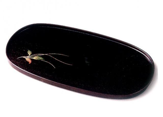 Podnos Mizuhikiso - ruční práce, vysoce lesklý, lakovaný přírodním lakem Uruši, která dodá japonský styl prostřenému stolu. Ze dřeva, oválný podnos. Dekorovaný tradičním japonským motivem - jemným vzorem květin mizuhiki (Polygonum filiformni) v levém dolním rohu. Dodáváme v dárkové krabičce.