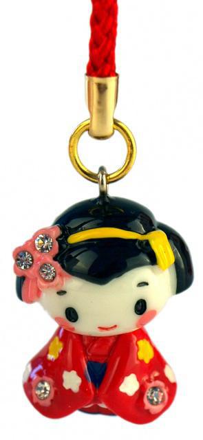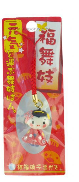 Malý talisman pro štěstí - milá pozornost pro vaše blízké. Maiko - v překladu tancující dívky - byly v historickém Japonsku děvčata, která se začala učit umění gejšy. Tancovali pro hosty čajoven, hráli na tradiční japonské nástroje. V krásných kimonech, s typickým bílým make-upem je můžete zahlédnout i nyní - jak spěchají, obuté do vysokých lakovaných dřevěných sandálů pokkuri - ve starých částech města Kjóto.