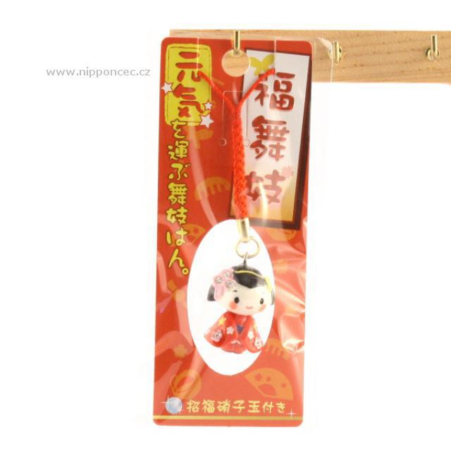Malý talisman pro štěstí - milá pozornost pro vaše blízké. Maiko - v překladu tancující dívky - byly v historickém Japonsku děvčata, která se začala učit umění gejšy. Tancovali pro hosty čajoven, hráli na tradiční japonské nástroje. V krásných kimonech, s typickým bílým make-upem je můžete zahlédnout i nyní - jak spěchají, obuté do vysokých lakovaných dřevěných sandálů pokkuri - ve starých částech města Kjóto.