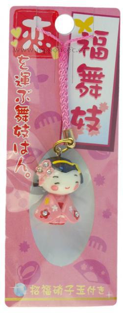 Malý talisman pro štěstí - milá pozornost pro vaše blízké. Maiko - v překladu tancující dívky - byly v historickém Japonsku děvčata, která se začala učit umění gejšy. Tancovali pro hosty čajoven, hráli na tradiční japonské nástroje. V krásných kimonech, s typickým bílým make-upem je můžete zahlédnout i nyní - jak spěchají, obuté do vysokých lakovaných dřevěných sandálů pokkuri - ve starých částech města Kjóto.