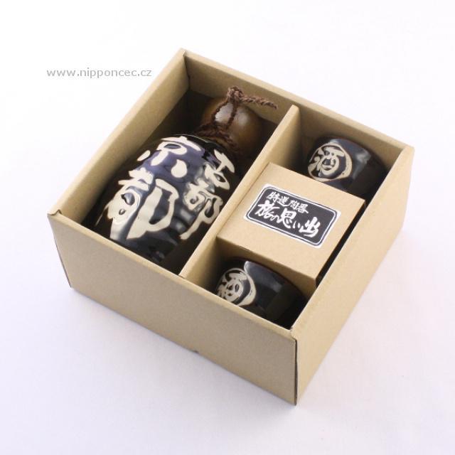 Saké set Kuromaru Kyoto je sada láhve na saké takkuri a dvou pohárků s černohnědou glazurou. Set je vyrobený z keramiky. Na láhvi je nápis Koto Kjóto - což je staré císařské město. Pohárky jsou dekorovány znakem saké.