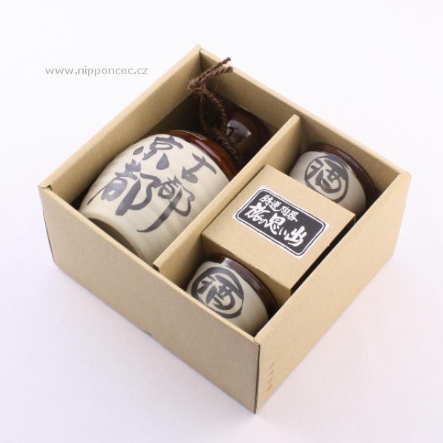 Saké set Shiormaru Kyoto je sada láhve na saké takkuri a dvou pohárků s bílohnědou glazurou. Set je vyrobený z keramiky. Na láhvi je nápis Koto Kjóto - což je staré císařské město. Pohárky jsou dekorovány znakem saké.