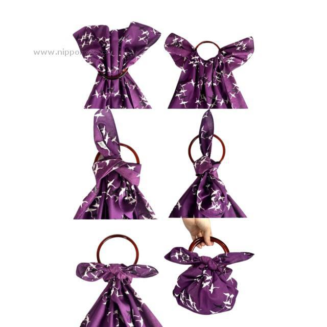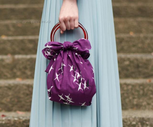 Taška na nákup i kabelka, dobrý přítel bento - to je Furoshiki. Dodává se s kruhovými držadly, takže ze svého Furoshiki vytvoříte během chvíle jedinečnou a pěknou kabelku. Tajemství spočívá v jednoduchém uzlu, kterým držadlo připevníte k látce. Kabelku můžete kdykoliv znovu rozebrat a Furoshiki tak použít na jiné účely. Jedinečná příležitost pro tvořivé duše! Pokud se vám nošení osvědčí, lze si vybrat i Furoshiki s tradičním nebo moderním vzorem z naší nabídky. Toto Furoshiki má fialovou barvu se vzorem jeřábů, kteří jsou v Japonsku symbolem dlouhého a šťastného života.