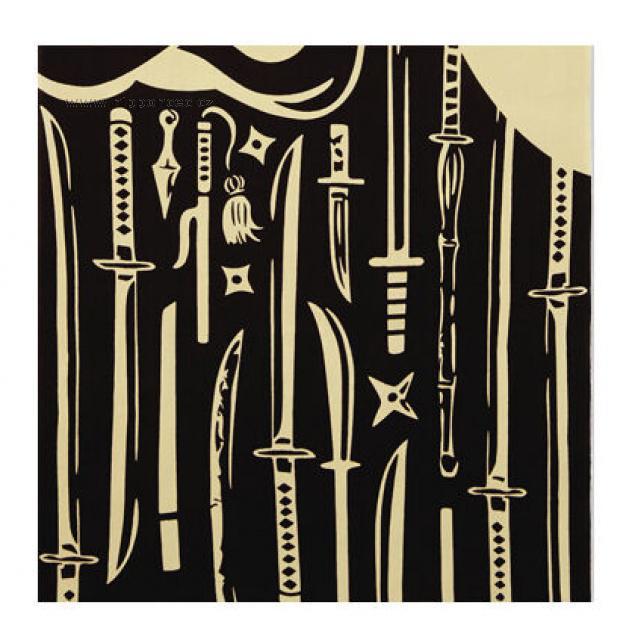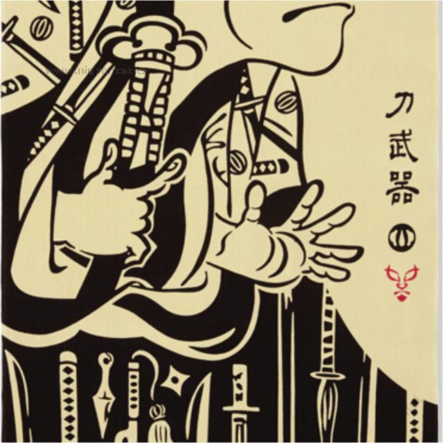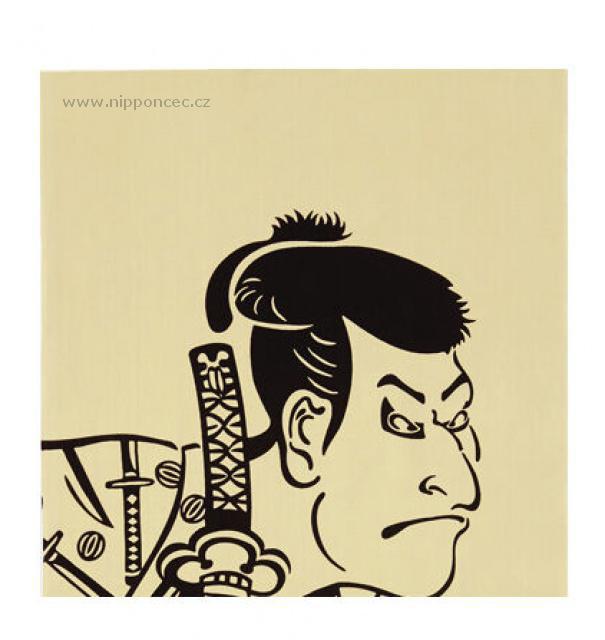 Originální japonský šátek tenugui s motivem herce divadla Kabuki se samurajským mečem katana a vyobrazením dalších mečů. Tenugui se v historickém Japonsku používaly s erbem rodu místo vizitek. Jde o typický japonský suvenýr. Nyní vám může japonské tenugui posloužit jako malý ručník, pás na čelo, šátek, dekorace či eko balení dárků nebo jej využijete při sportu kendo, jako pokrývku hlavy.
