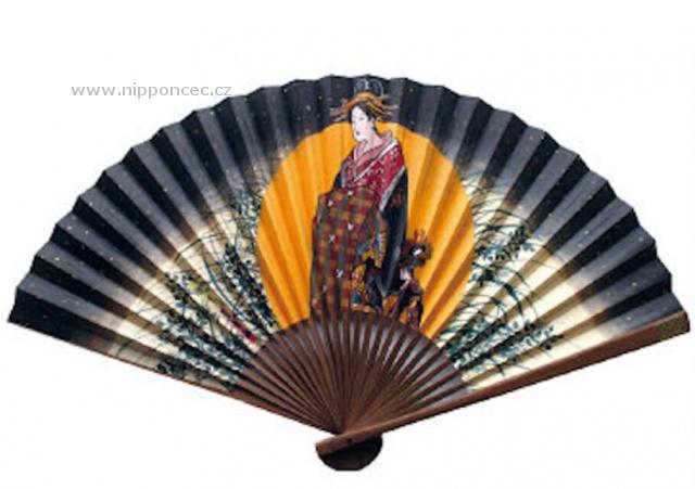 Elegantní japonský vějíř je dekorován motivem krásky v záři úplňku. Tento motiv vychází ze slavných motivů Ukiyo-e (japonský umělecký žánr z období 17 až 19 století). Vějíř je vyroben tradiční japonskou metodou.