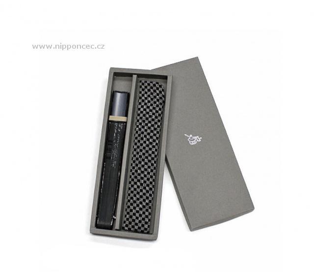 Půvabný japonský vějíř, zdobený černými květinami na stříbrno-bílém pozadí, představuje rafinovaný doplněk pro společenské události, jako jsou plesy, divadelní představení, svatby či letní slavnosti. Kromě toho je součástí vějíře elegantní černé pouzdro pro jeho bezpečné uložení, a vše je pečlivě zabaleno v dárkové krabičce.