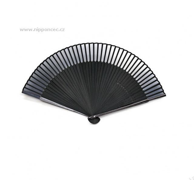 Elegantní japonský vějíř Sútra s motivem budhistického svatého písma psaného zlatou barvou na černém pozadí. Sútra znamená doslovně vlákno nebo provaz, který drží věci pohromadě. Sútry vznikaly od nejstarších dob jako koncentrovaná, pro zapamatování vhodná vyjádření důležitých filozofických, náboženských i specializovaných odborných obsahů.