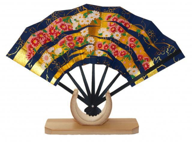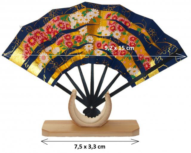 Maličký vějíř - dekorace - s motivem květů - rozměrů 15 x 9 cm. Půvabný a elegantní ručně malovaný vějíř, vyrobený z papíru a bambusového dřeva v slavné japonské dílně MAISENDO. Včetně stojánku na postavení.