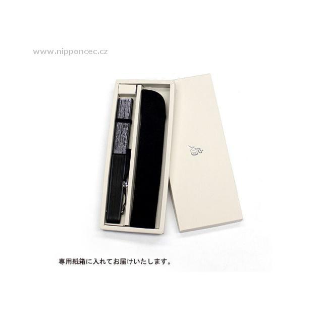 Půvabný japonský vějíř, zdobený stříbrnými květinami na černém pozadí, představuje rafinovaný doplněk pro společenské události, jako jsou plesy, divadelní představení či letní slavnosti. Kromě toho je součástí vějíře elegantní černé pouzdro pro jeho bezpečné uložení, a vše je pečlivě zabaleno v dárkové krabičce.
