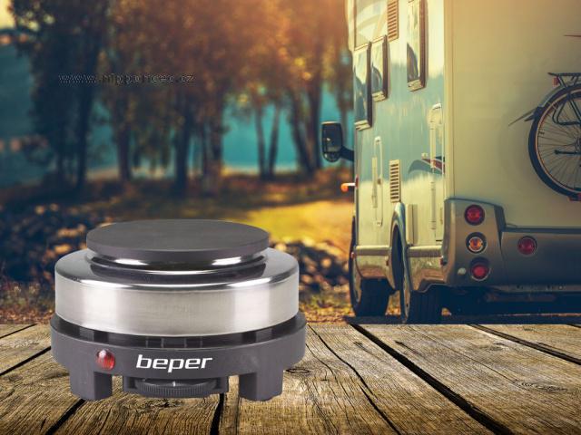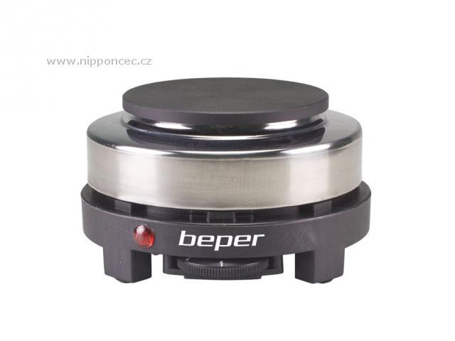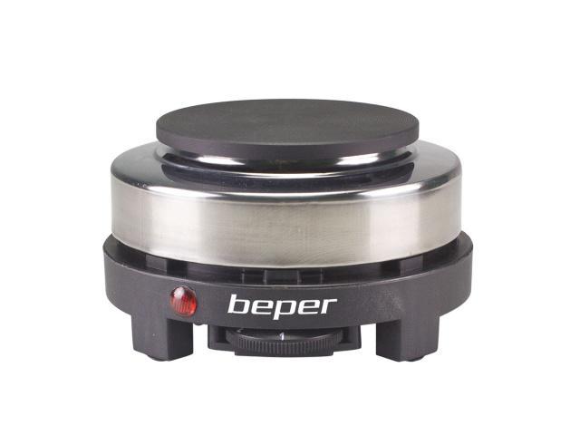Jednoplotýnkový elektrický vařič BEPER P101PIA002 s litinovou deskou o průměru 10 cm. Disponuje termostatem pro nastavení teploty - 5 stupňů. Ochrana proti přehřátí a protiskluzové nožičky zajišťující stabilitu.