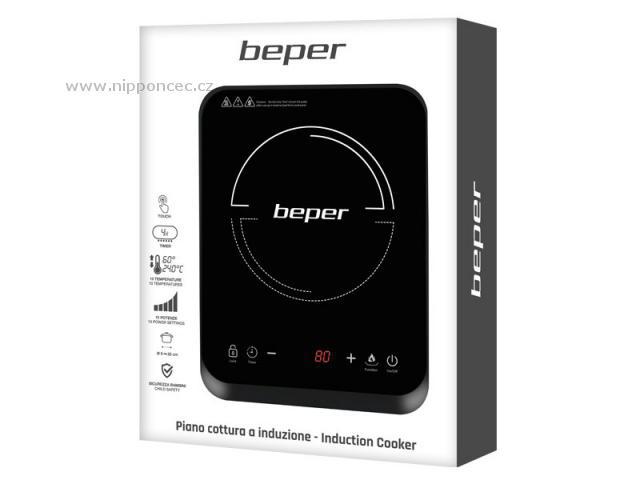 Jednoplotýnkový indukční vařič s moderním designem BEPER BF700 s výkonem 2000 W lze použít pro nádoby o průměru 8 až 25 cm. Dotykový ovládací panel pro výběr výkonu a teploty. Disponuje dětskou pojistkou, funkcí automatického vypnutí, ochranou proti přehřátí, funkcí udržení teploty a časovačem od 10 minut do 4 hodin. Pohodlnější vaření bez plamene, deska je odolná proti poškrábání, zkracuje dobu vaření o cca 1/3.