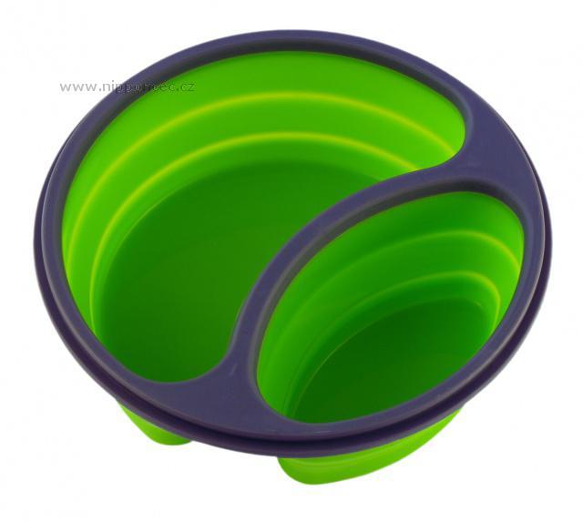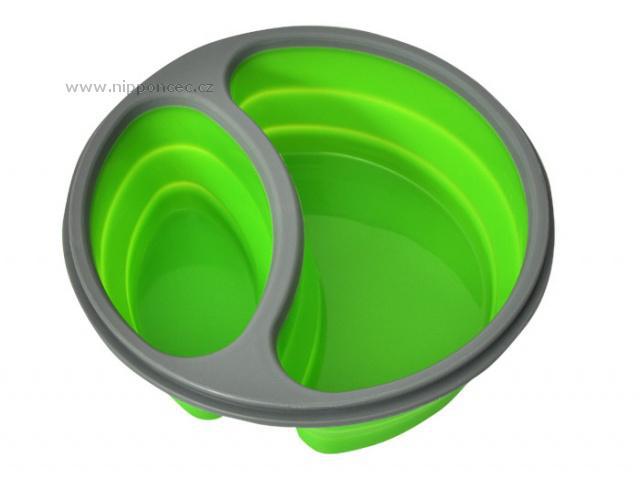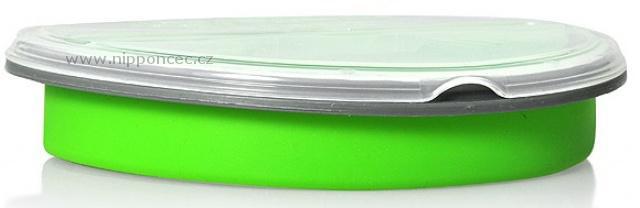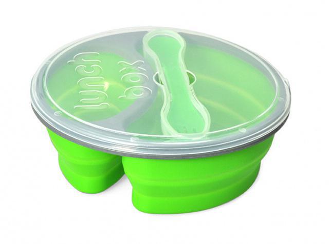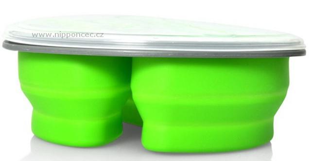 Silikonová přepravka na potraviny je ideální pro ohřev jídla v mikrovlnné troubě. Moderní desingn s dvěma přihrádkami. Ve víku je umístěna plastová vidlička-lžička 2 v jednom. Konstrukce jídlonosiče je skládací, pro snadné uskladnění. Velmi snadno se čistí, nevyžaduje olejování. Krabička na jídlo neabsorbuje pachy a je odolná vůči nečistotám.