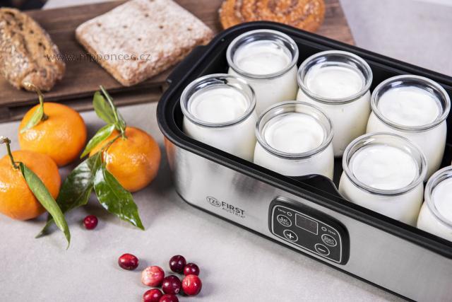 S jogurtovačem značky First Austria si snadno připravíte svůj oblíbený domácí jogurt s využitím nejčerstvějších surovin, bez umělých přísad a konzervačních látek. Jogurtovač First Austria FA-5120-2 disponuje digitálním displejem, který umožňuje volbu času a teploty. Na přípravu jogurtu slouží 8 nádob s víčkem o objemu 190 ml. v kterých je možno uskladnit připravený jogurt v ledničce.