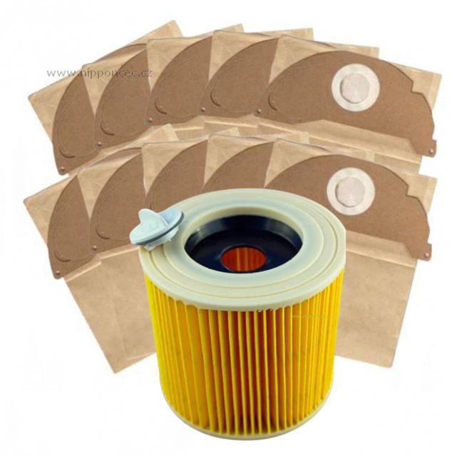 Sada 10ks papírových sáčků a 1ks filtrační patrony pro vysavače Kärcher je kompatibilní pro značení KARCHER 6.904-322.0, Kärcher 6.414-552.0 a určena pro vysavače KÄRCHER A 2000 až A 2099, A 2003, KÄRCHER A 2004, A 2014 CV, A 2024 pt, KARCHER A 2054 Me, KÄRCHER A 2120 Me, KARCHER MV 2, KARCHER WD 2 Cartridge filter, KARCHER WD 2 Home, KARCHER WD 2, KARCHER WD 2 Premium, KARCHER WD 2.000 až WD 2.999, KARCHER WD 2.200 Ecologic, KARCHER WD 2.200, KARCHER WD 2.2004c, KARCHER WD 2.210, KARCHER WD 2.240, KARCHER WD 2.250 Ecologic, KARCHER WD 2.250,KARCHER WD 2.400 M, KARCHER WD 2.500 ..Sáčky jsou vyrobeny z vícevrstvého filtračního papíru, filtr se dodává včetně zámku.
