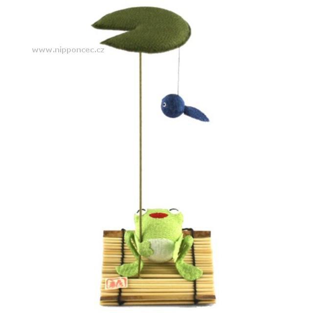 Ozdoba na stůl - žabka jako talisman pro šťastný návrat domů. Textilní žabička je doplněna o leknín, mušku a rákosovou podložku. Rozměry ozdoby jsou 6 x 6 x 15 cm.