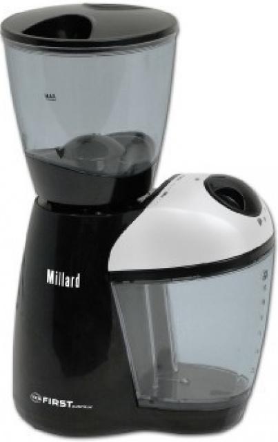 S kapacitou 100g/12 šálků kávy je kávomlýnek First Austria praktický pomocník v domácnosti. Kávomlýnek je vybavený nastavitelným stupněm mletí. Kovové mlecí kameny brání pachuti, vznikající přiliš intenzivním mletím . Na spdní části výrobku je umístěna schránka na kabel. Příkon 100W.
