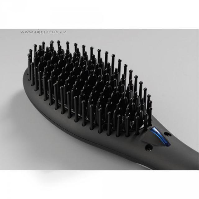 Stačí pouze pročešat vlasy a ihned jsou hladké, lesklé a rovné. Teplota je nastavitelná od 160 do 210°C. Kabel je komfortně dlouhý 2,5 m. Nechybí ionizační efekt pro nadýchaný účes. Povrch horké plochy kartáče je kemramický, ve kterém jsou vloženy nylonové kolíčky.