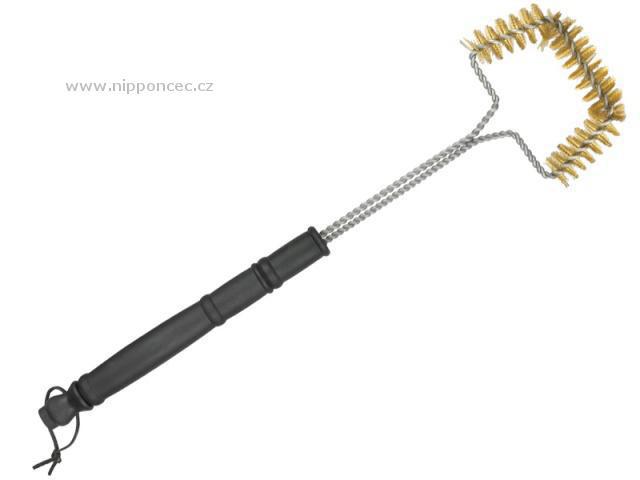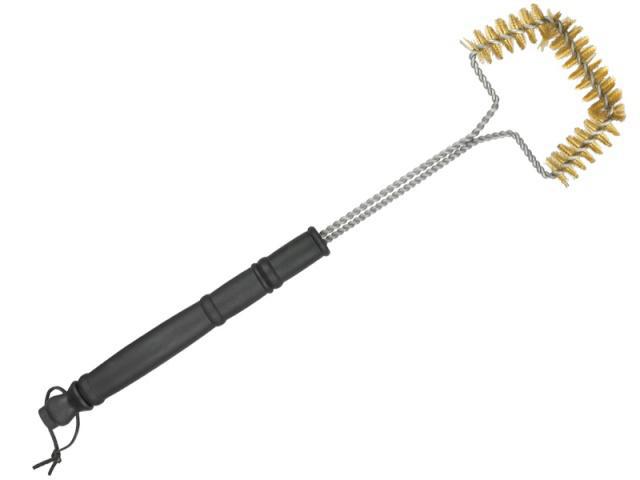 Třístranný kartáč s mosaznými štětinami pro důkladné čištění roštů grilu. Správná údržba podpoří jedinečnou chuť pokrmů.