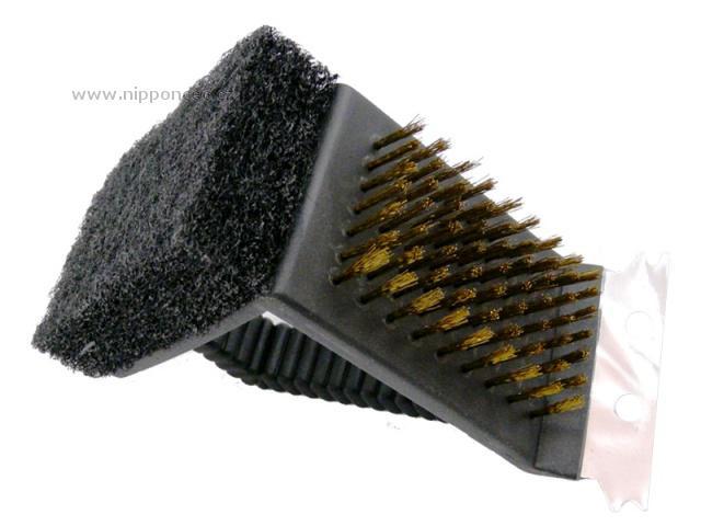 Kartáč na čištění grilu FIELDMANN FZG 9003 tři v jednom vám pomůže s důkladným čištěním roštu vašeho grilu pomocí škrabky, ocelového kartáče a brusné houbičky.