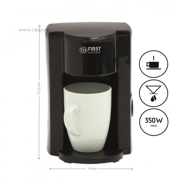 Malý a skladný kávovar na překapávanou kávu First Austria pro jeden šálek kávy je ideální na doma, do kanceláře nebo i do malé kuchyňky na chatu. Filtr na kávu v kávovaru je permanentní, není nutno dokupovat papírové filtry. Součástí balení je i jeden šálek na kávu.