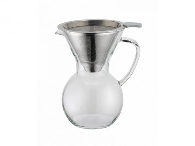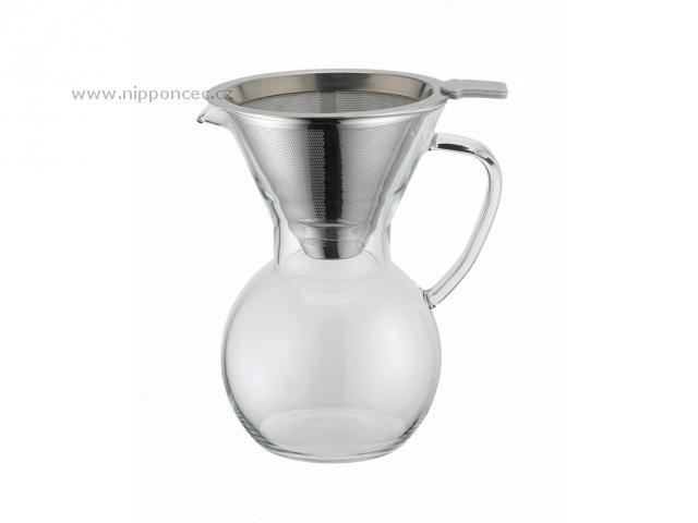 Elegantní skleněný kávovar s dvouvrstvým filtrem pro přípravu kávy formou "Pour over", což znamená v doslovném překladu "zalít". Do horní části skleněné konvice se umístí nerezový dvouvrstvý filtr s velmi jemnou perforací, která zajišťuje optimální průtok kávy a umožňuje dosáhnout vyváženého chuťového výsledku. Jakmile je káva přefiltrovaná, lze filtr opět vyjmout, a konvici můžete rovnou použít pro servírování.