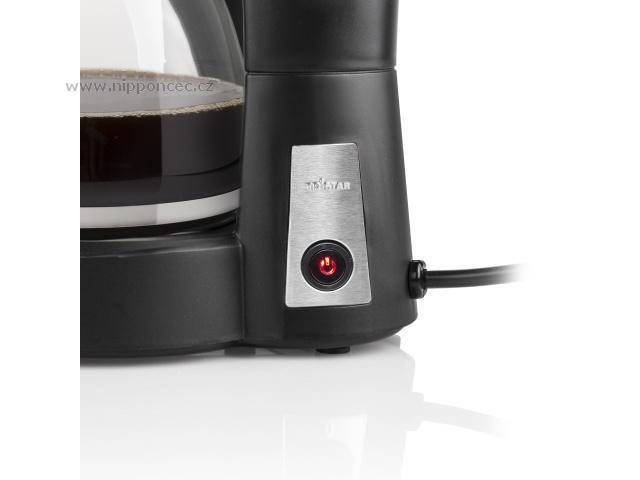 Kávovar Tristar CM 1233 v provedení z černého horkuodolného plastu, s nerezovými akcenty. Za chvíli připraví 6 šálků vynikající překapávané kávy. Obsah zásobníku na vodu je 0,6 litru. Kávovar je vybaven systémem "Drip-stop", proti nechtěnému odkapávání, přepínačem ON/OFF a funkcí udržování teplé kávy. Konvička je skleněná, s odměrkou. Spodní část výrobku má protiskluzovou úpravu pro bezpečné postavení na kuchyňské desce. Praktická je i funkce automatického vypnutí po 40 minutách, která šetří elektrickou energii.