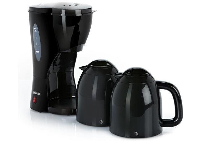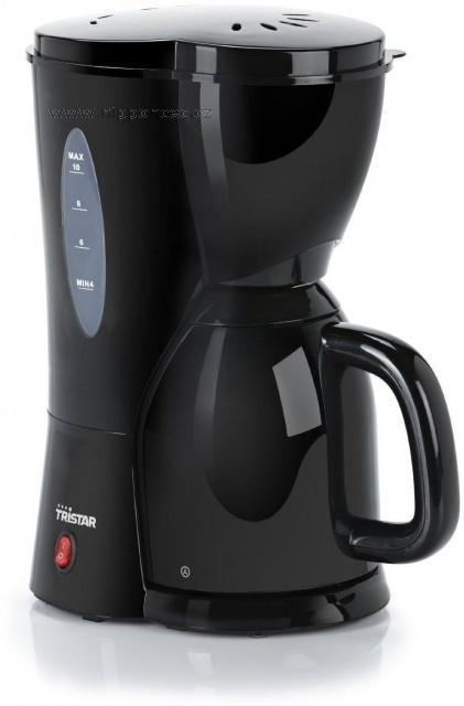 Kávovar Tristar KZ 1229 v provedení z černého horkuodolného plastu, s výkonem 900W. Vhodný pro 8-10 šálků vynikající překapávané kávy a dvě termosky součástí.