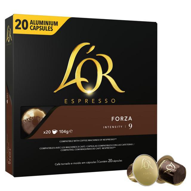 Kapsle L'OR Espresso Forza perfektně propojuje intenzivní plnou chuť kávy s jantarovou krémovou pěnou. Intenzita kávy je 9 z 14, tedy jedná se o středně silnou kávu, která vždy pohladí vaše smysly. Káva je vhodná pro Nespresso přístroje a byla vypěstována zemědělci, kteří jsou certifikovány podle UTZ (udržitelné hospodaření kávy).