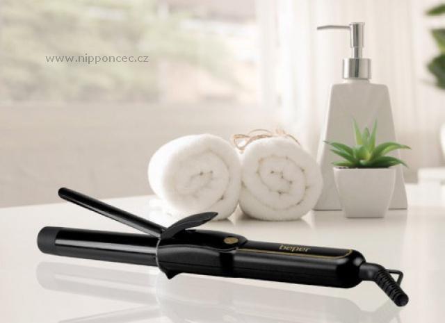 S kulmou Beper P301PIS001 o průměru 25 mm vykouzlíte dokonale upravené vlny nebo kadeře snadno a rychle. Na teplotu 180 °C se tento šikovný pomocník s příkonem 35 W nahřeje zhruba za minutu. Jeho hlavice je potažena keramikou, která rovnoměrně šíří teplo a hladce klouže po vlasech. Studená špička kulmy vás ochrání před popálením a manipulaci s tímto přístrojem usnadňuje také napájecí kabel s otočným kloubem.