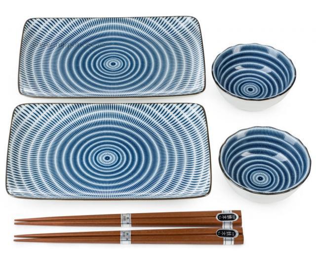 Přeneste si kus Japonska přímo do vaší domácnosti a užijte si jídlo v japonském stylu. Vždyť požitek z jídla není tvořen pouze jeho chutí, ale z části i stolováním. Keramická sada Tochiri set se skládá ze 2 porcelánových talířů, 2 misek a 2 párů hůlek. Japonské nádobí je potištěno jemným, ale zároveň moderním, geometrickým designem. Vše je krásně zabalené do dárkové krabice. Nádobí je vhodné do mikrovlnné trouby i myčky nádobí.