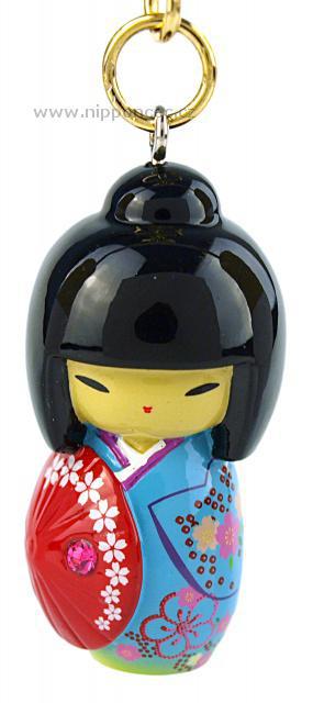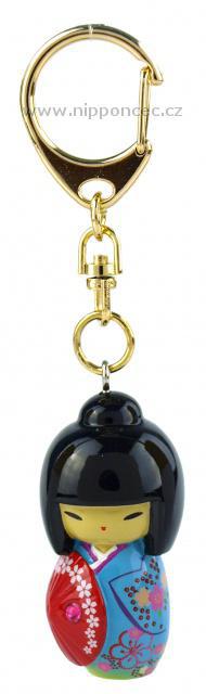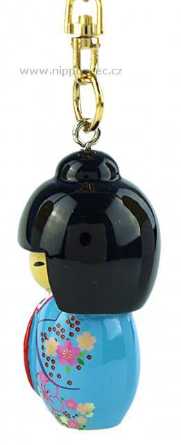 Klíčenka s japonským motivem Kokeshi  o rozměrech 4.5 x 2,5 x 2,5 cm. Materiál: Polyresin.