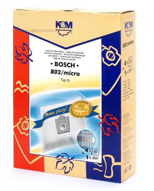 K&M Sáčky do vysavačů Bosch a Siemens 4ks Sáčky do vysavačů Bosch a Siemens z netkané textilie jsou kompatibilní pro značení výrobců BOSCH BBZ41FG, BOSCH BBZ41FGALL, BOSCH BBZ10TFG, BOSCH / SIEMENS D, E, F, G, GXL, H, SIEMENS VZ41FGALL JOLLY S16 MAX, MENALUX 2000, MENALUX 2900, SWIRL S62, SWIRL S67, SWIRL S68.. Tyto sáčky jsou vhodné do většiny vysavačů BOSCH a SIEMENS, např. pro modely BOSCH Alpha, BOSCH GL-20, BOSCH GL-30, BOSCH GL 45, BOSCH BS 55, BOSCH BSD Serie, BOSCH BSC Serie, BOSCH BGL3xx, BOSCH BGL4xx, BOSCH BSSG7xx,BOSCH BSGLxx,, BOSCH Zoo, BOSCH Logo, BOSCH Free e, BOSCH Bag Bagless, BOSCH Pro Animal Hair, KÄRCHER VC 6, KARCHER VC 6 Premium, SIEMENS Super XS Dino, SIEMENS Synchropower, SIEMENS VS08GP 1000 až 9999 a další vysavače, zde uvedené Sáčky z mikrovlákna od společnosti K&M do vysavačů Bosch a Siemens jsou složené ze 2 vrstev filtračního vlákna. Tento druh vysavačových sáčků poskytuje lepší průtok vzduchu ve srovnání s papírovým sáčkem. Také udržuje vysokou účinnost filtrace v průběhu vysávání (namísto papírového pytle, kde dochází k poklesu výkonu, když je sáček již částečně plný). Díky vysokému stupni filtrace je i vzduch vycházející z přístroje výrazně čistší, ve srovnání s použitím sáčku z papíru. Vícevrstvý materiál sáčku KM zabraňuje roztržení či poškození sáčku.. Mikro sáček je flexibilní a perfektně padne do prachové komory vysavače určené pro sáček, takže se do něj vejde více nečistot - 3 sáčky z mikrovlákna vydrží stejně, jako 5 sáčků papírových. - 4 ks sáčků z netkané textilie k vysavačům Bosch a Siemens