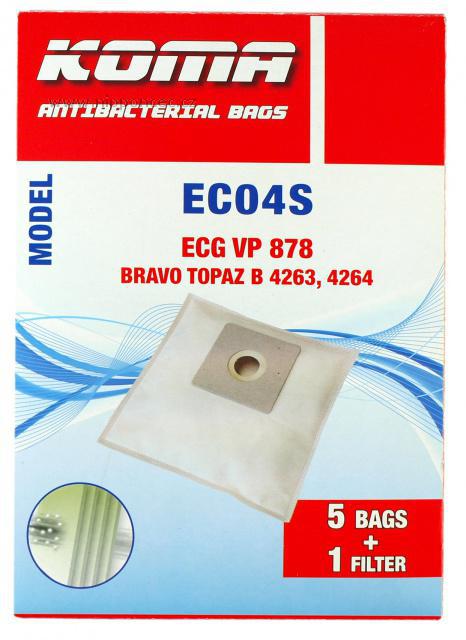 Sáčky do vysavače Bravo B 4263 Topaz, B 4264 Topaz, ECG VP 878 Balení obsahuje 5 sáčků, určených pro vysavače BRAVO B4263 Topaz, BRAVO B 4264 TOPAZ, ECG VP 878 vyrobených z netkané textilie a univerzální mikrofiltr k nástřihu podle filtru původního ve vašem vysavači. Sáčky z netkané textilie jsou sáčky nové generace, které svými vlastnostmi nahrazují klasické papírové sáčky. Mikrovlákenná struktura sáčků zajišťuje vyšší pevnost, konstantní sací výkon, účinnější filtraci a až o 50% delší životnost sáčku. Při výměně sáčku postupujte podle návodu k obsluze jednotlivých vysavačů.