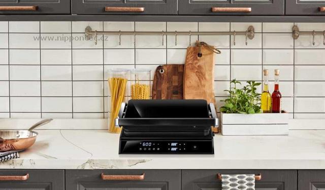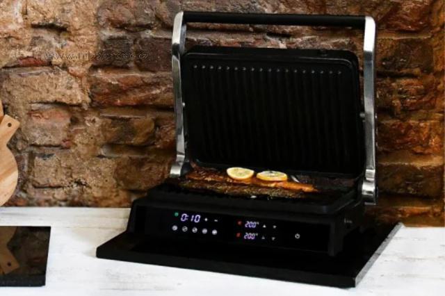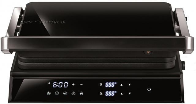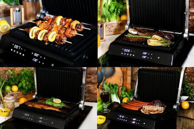 Šťavnatý steak, jemné kuřecí maso, křupavá zelenina? Své oblíbené pochoutky nyní můžete připravit rychle a bez tuku na stylovém elektrickém kontaktním grilu Kluge PSC-140/B. Na intuitivním dotykovém panelu s LED displejem máte k dispozici pět automatických programů nebo individuální nastavení teploty a času. Elegantní černá barva zajistí, že se zařízení stane také ozdobou vaší kuchyně.