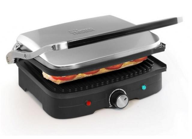 Praktický kontaktní gril Tristar GR 2840, který zajišťuje rychlé, zdravé jídlo z masa i ryb. Díky různým variabilním pozicím může být použit jako stolní gril nebo kontaktní gril. Ploténky grilu jsou opatřeny nepřipékavou úpravou na bázi teflonu - snadné čistění, obvykle po použití postačí gril otřít papírovou utěrkou.