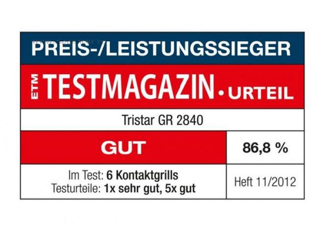 Termostat grilu je nastavitelný - pro docílení správné teploty pro různé druhy grilovaných potravin. Praktický pákový systém zajistí optimální propečení masa podle tloušťky. Víko kontaktního grilu GR 2840 Tristar je z nerezové oceli, ploténky  jsou vroubkované, pro charakteristické opečení vašeho steaku.