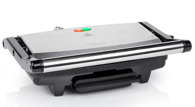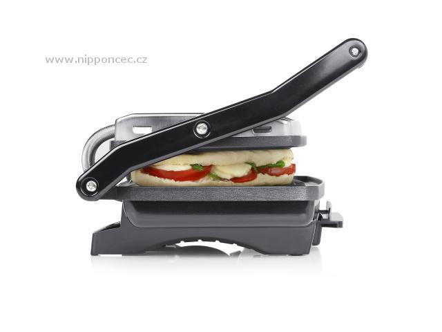 Kompaktní kontaktní gril pro zdravou přípravu masa, ryb, panini atd. Gril je vybaven nerezovým víkem, které mu dodává luxusního vzhledu. Pečící desky jsou z nepřilnavého materiálu, který usnadňuje čištění. Víko grilu je v nerezové provedení s bezpečnostním zámkem, grilovací desky se snadno čistí, velikost pečicí plochy je 25,5 x 15,5 cm.